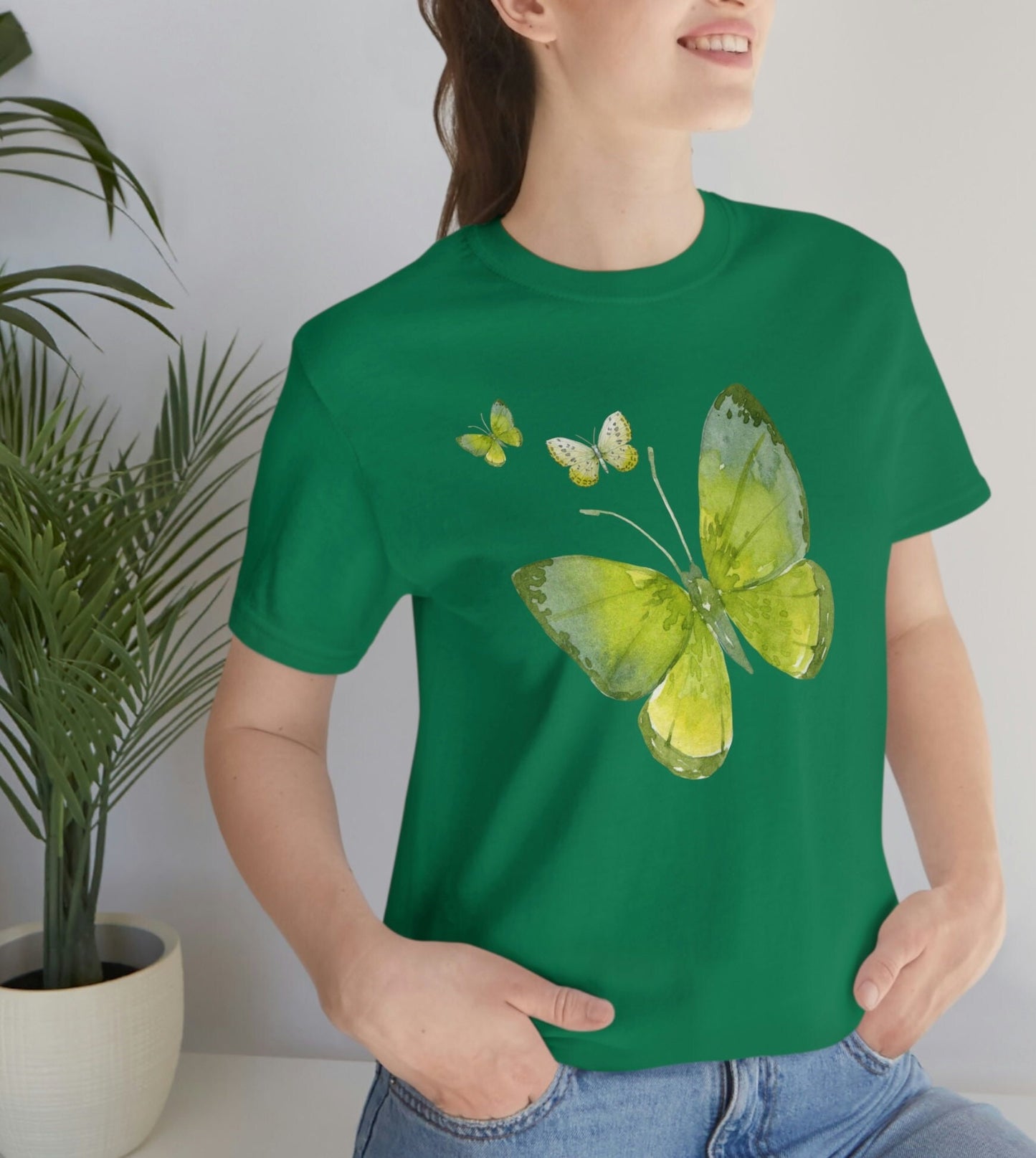 This butterfly short sleeve tee fits like a well-loved favorite. Soft cotton and quality print make users fall in love with it over and over again. These t-shirts have-ribbed knit collars to bolster shaping. The shoulders have taping for better fit over time. Dual side seams hold the garment's shape for longer.