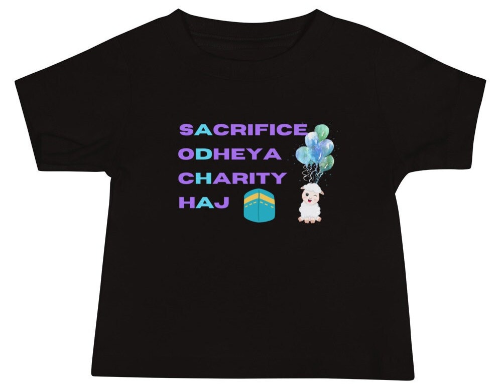 This Toddler Eid AlAdha Shirt is a short sleeve cotton jersey tee that's not only stylish, but also comfy, durable, and easy to clean. It's a classic that's bound to become the most loved item in your baby's wardrobe.